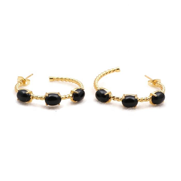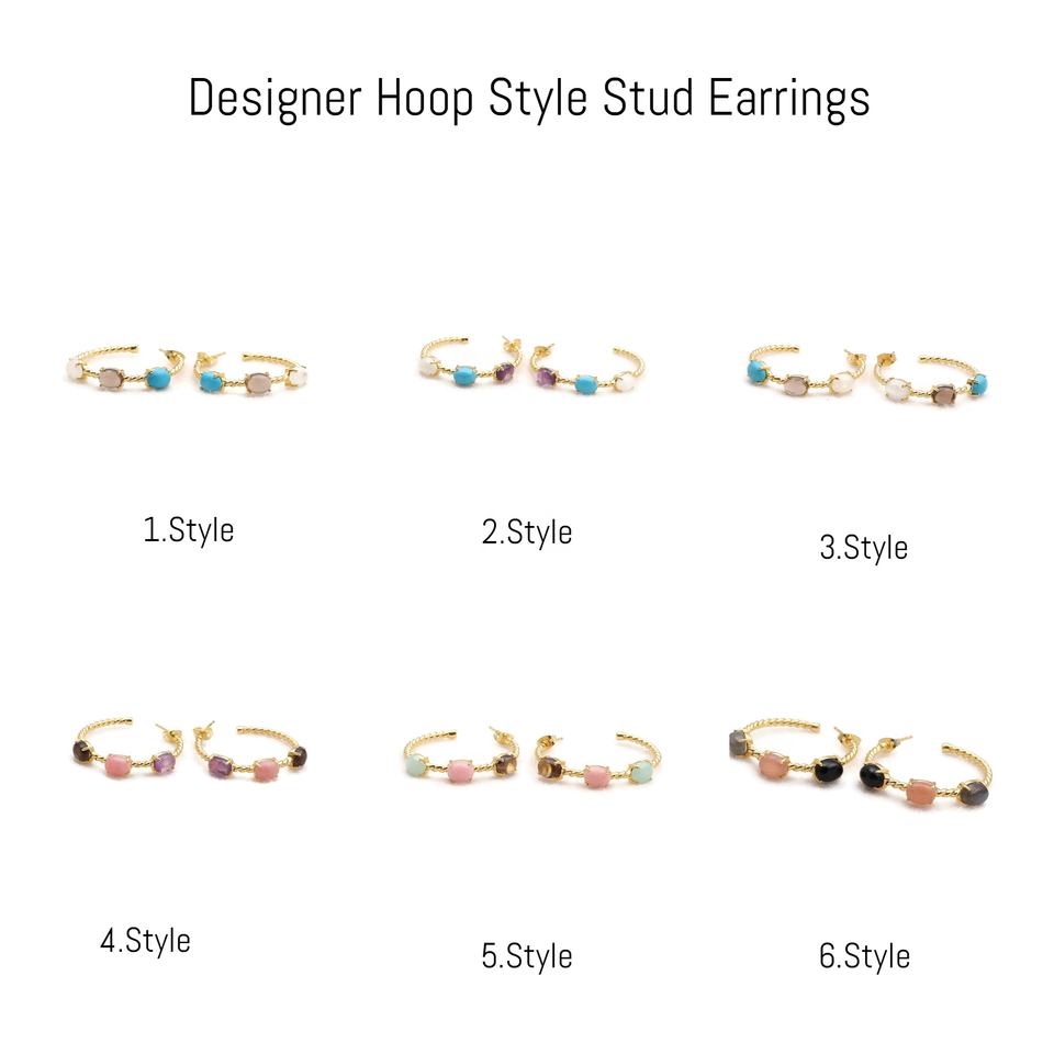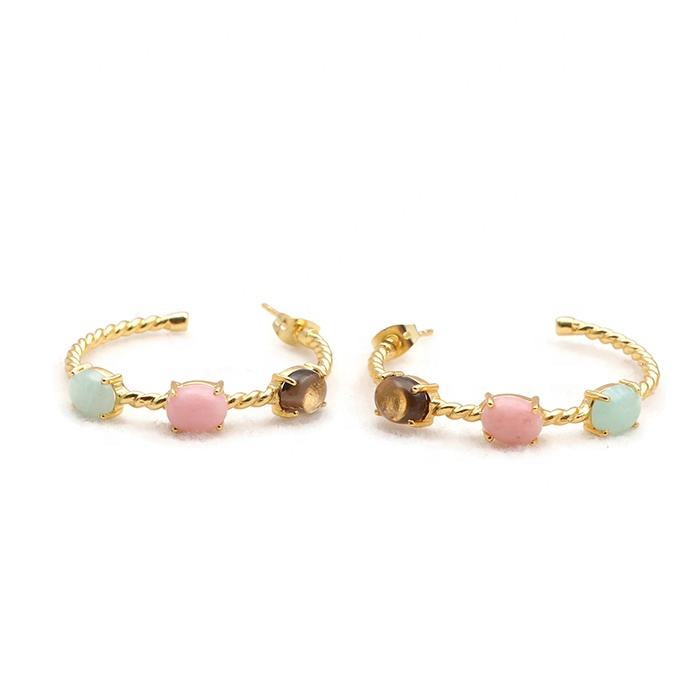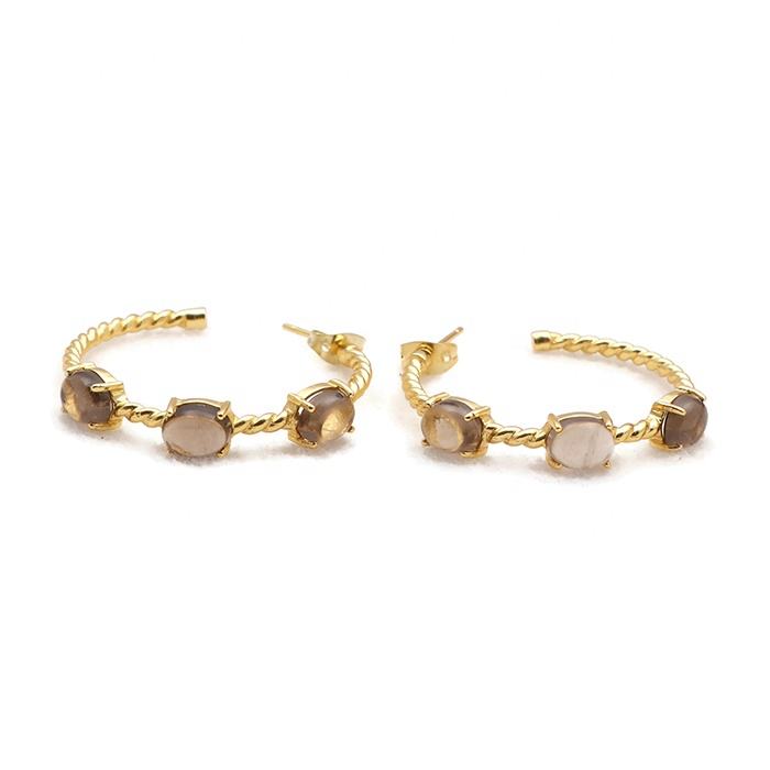 Aquamarine & Smoky Quartz Dangle Earrings Jewelry Oval Gemstone Set Gold Plated Multi Prong Set Hoop Earring Gemstone Jewelry