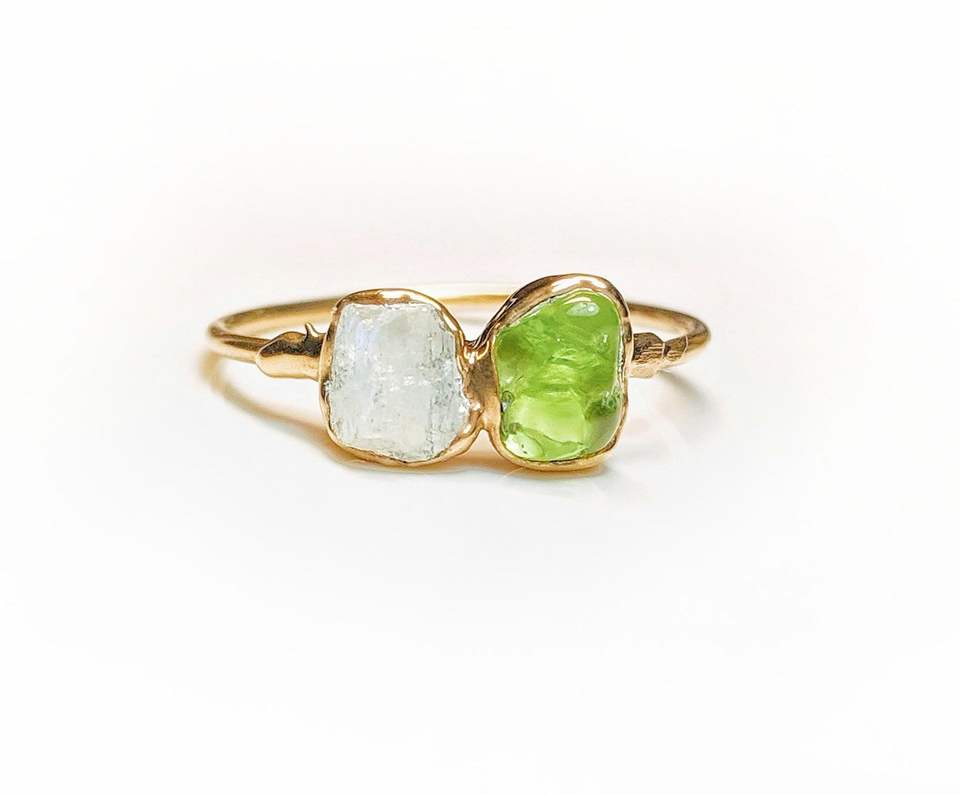 Aquamarine Peridot Herkimer Diamond Rough Electroplated Rings Original Raw Gemstones Gold Plated Rings Jewelry Minimalist Rings