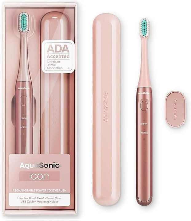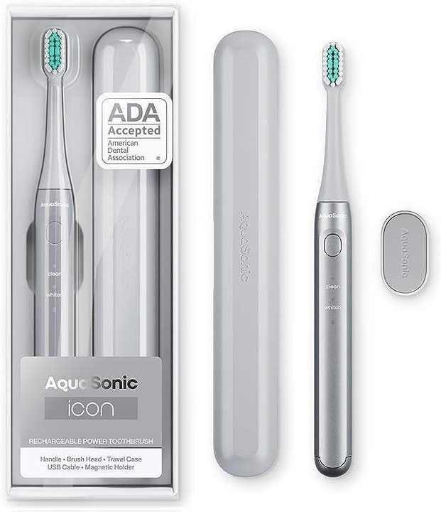 Aquasonic Icon ADA-Accepted Rechargeable Sonic Toothbrush With Magnetic Holder & Slim Travel Case 2 Brushing Modes Smart Timers