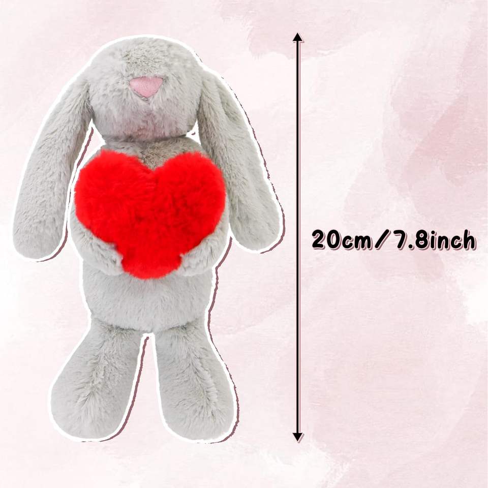 Aqushymallow Soft Fluffy Cow Gray Bunny Plush Toy Polyester Valentine's Day Stuffed Animal Gift for Kids Girls Heart Holding