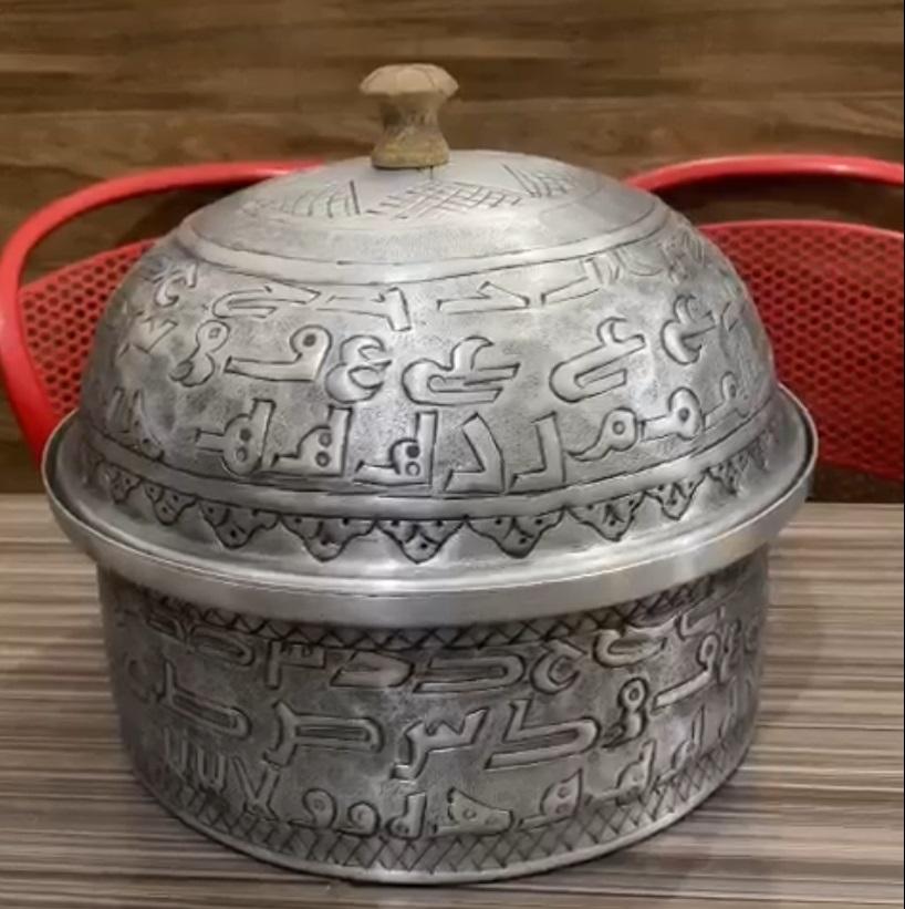 Arabic Alphabets Embossed Metal Casserole, Hot Pot & Food Warmer Made in SS Metal & Aluminium Metal