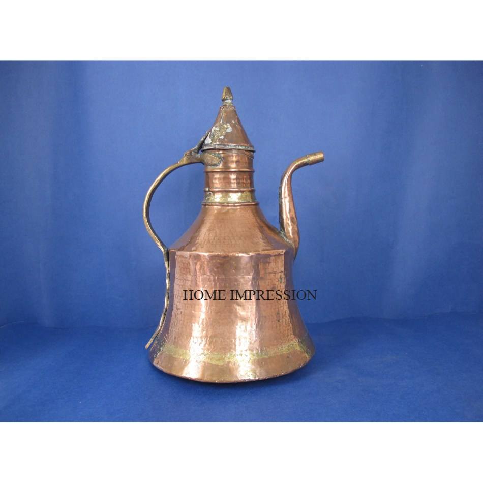 Arabic Dallah Copper Made Coffee Pot with Embossed Lid Available in Multiple Sizes Shiny Polish Finish Heat-Resistant Metal