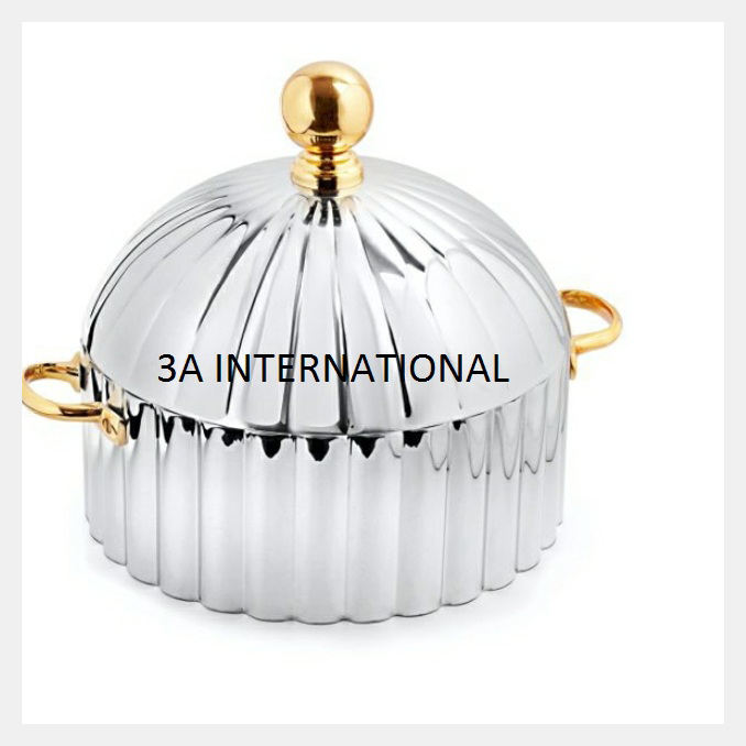 Arabic Design Cutting Double Wall Shiny Polished Serving Delicious Dishes Dining Table and Room Kitchenware Serving Hot Pot