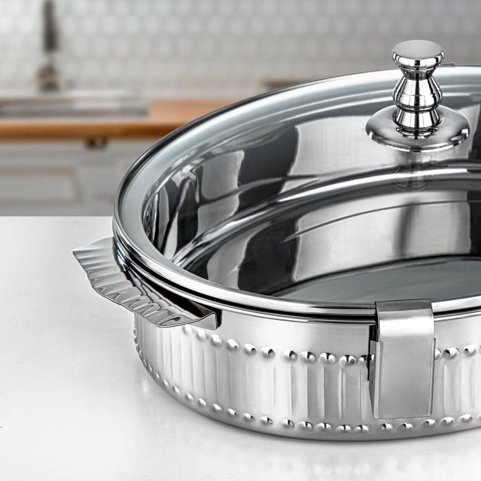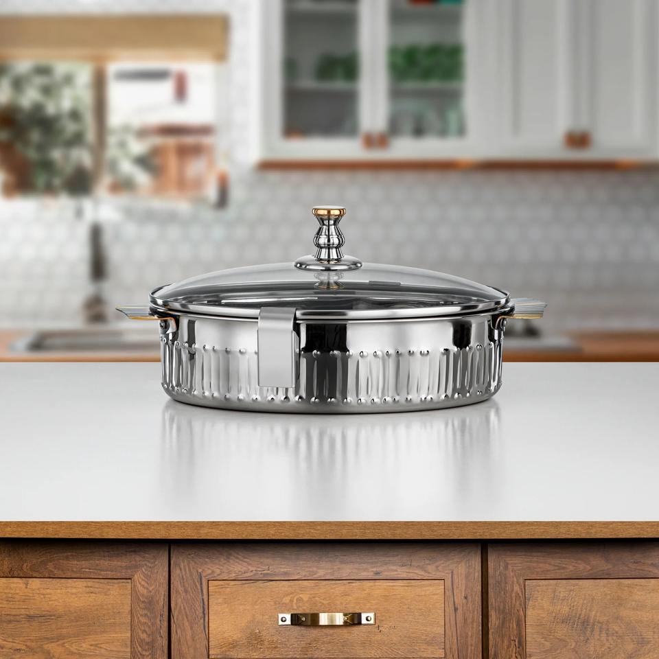 Modern Elegant Silver Finished Stainless Steel Casseroles for Food Serving Hot Pot Home Hotel Restaurant Use Eco-Friendly