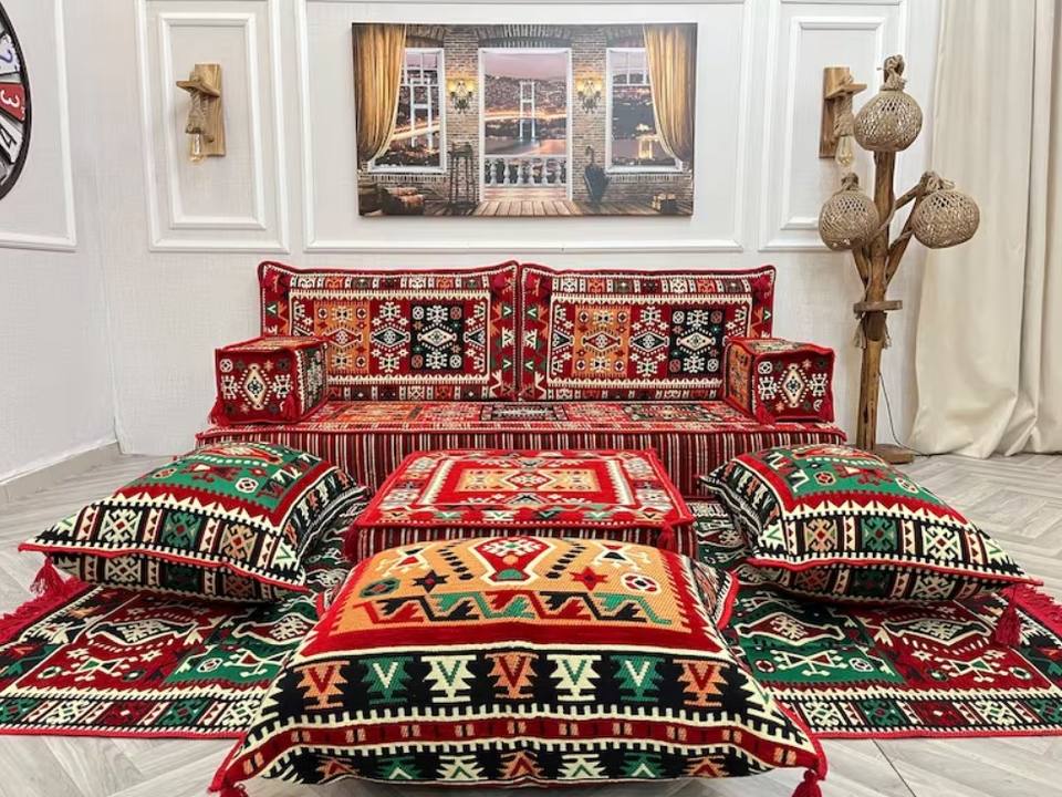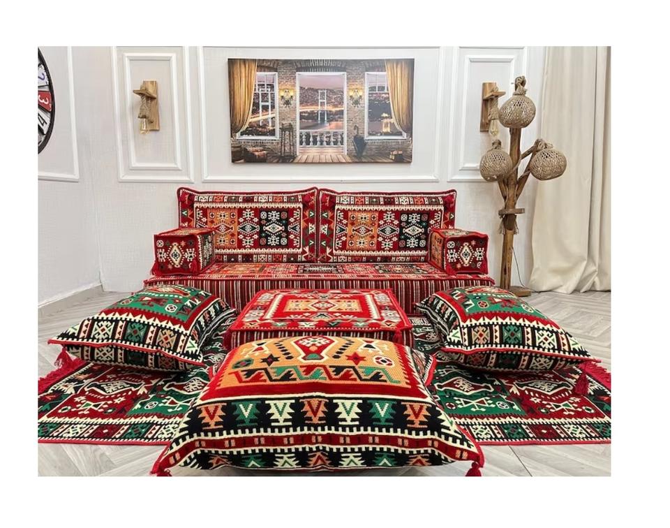 Arabic Floor Sofa Living Room Full Sets - 190cm / 6feet / 75 Inch - 1 Set of 11 Pcs - Covers + Sponge