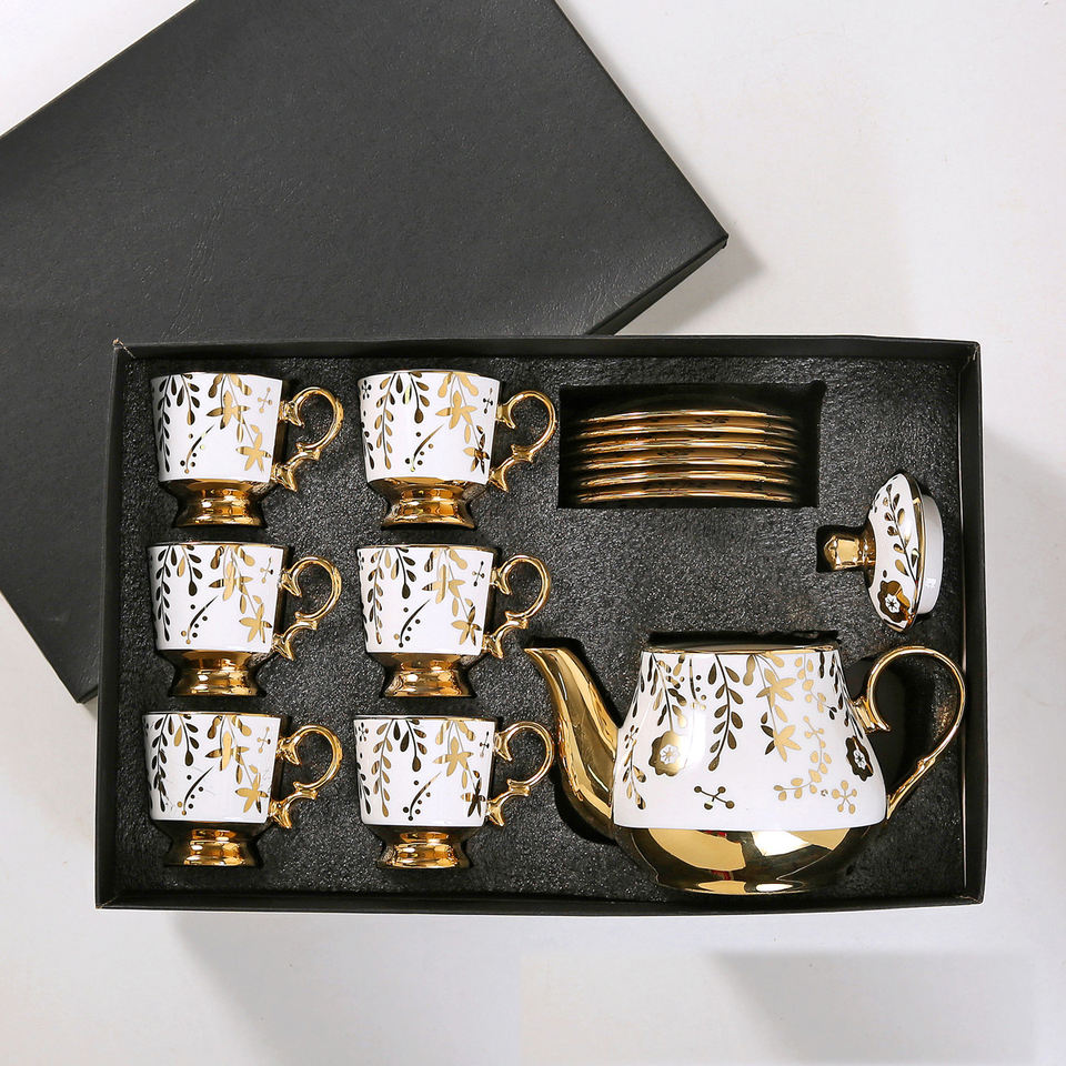 Arabic Golden Ceramic Espresso Coffee Cups and Saucer 110ml Porcelain Tea Set with Teapot 13pcs Gift Set