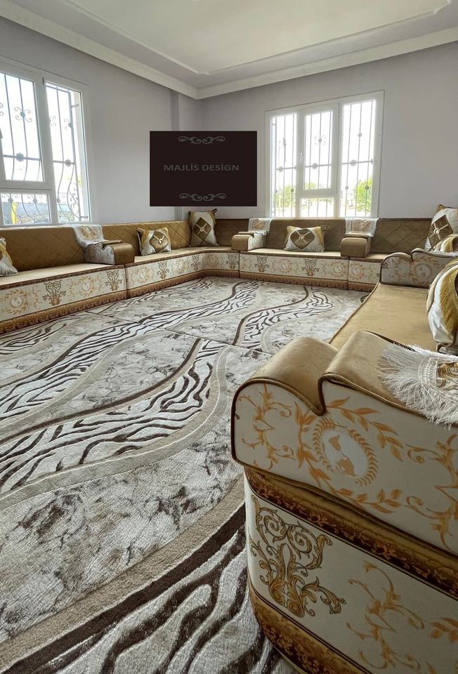 Arabic Majlis Moroccan Majlis Design | Sitting Height 40cm | Sofa + Wool Carpet + Curtain + Table Set FULL