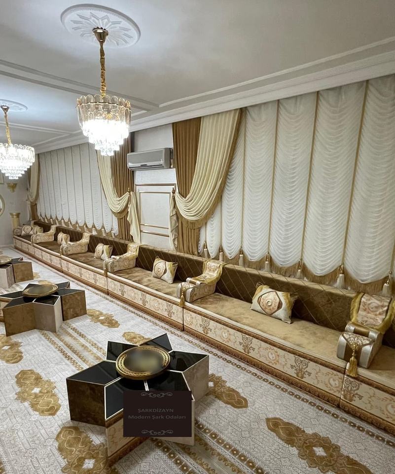 Arabic Majlis Moroccan Majlis Design | Sitting Height 40cm | Sofa + Wool Carpet + Curtain + Table Set FULL
