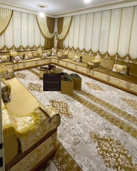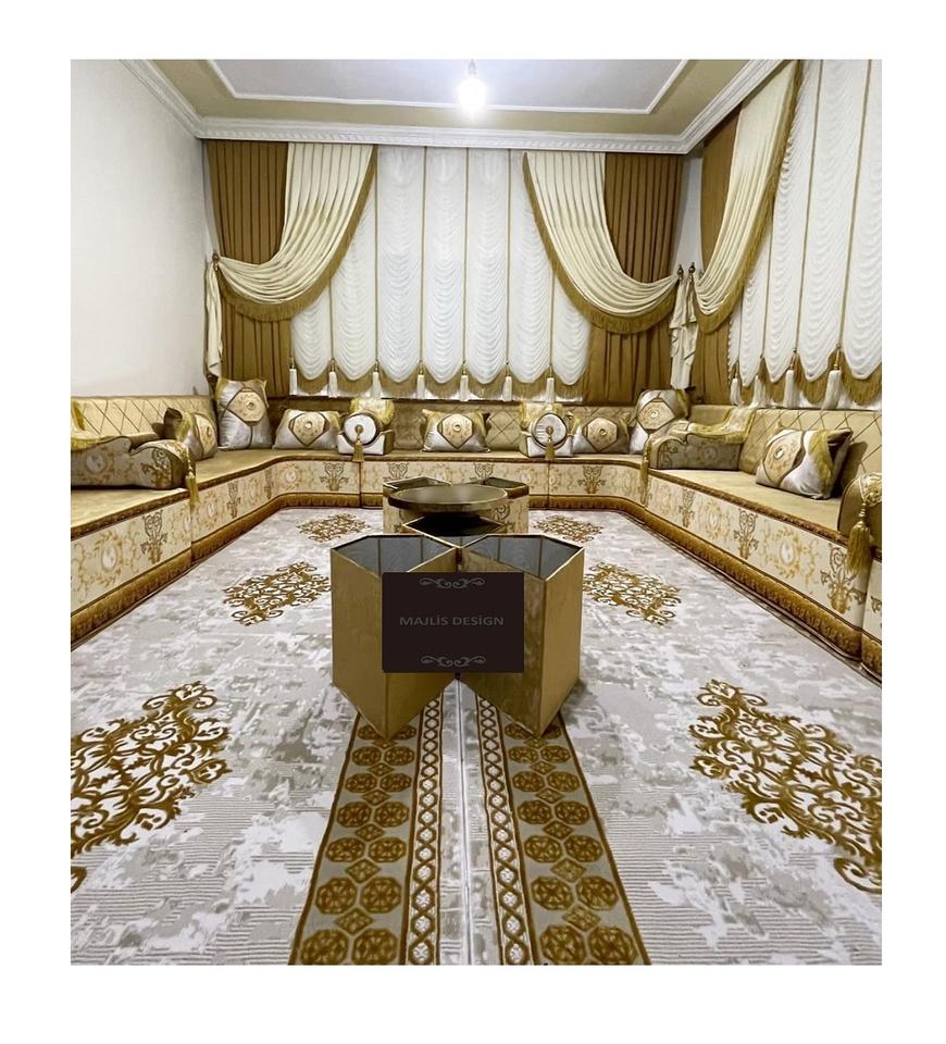 Arabic Majlis Moroccan Majlis Design | Sitting Height 40cm | Sofa + Wool Carpet + Curtain + Table Set FULL