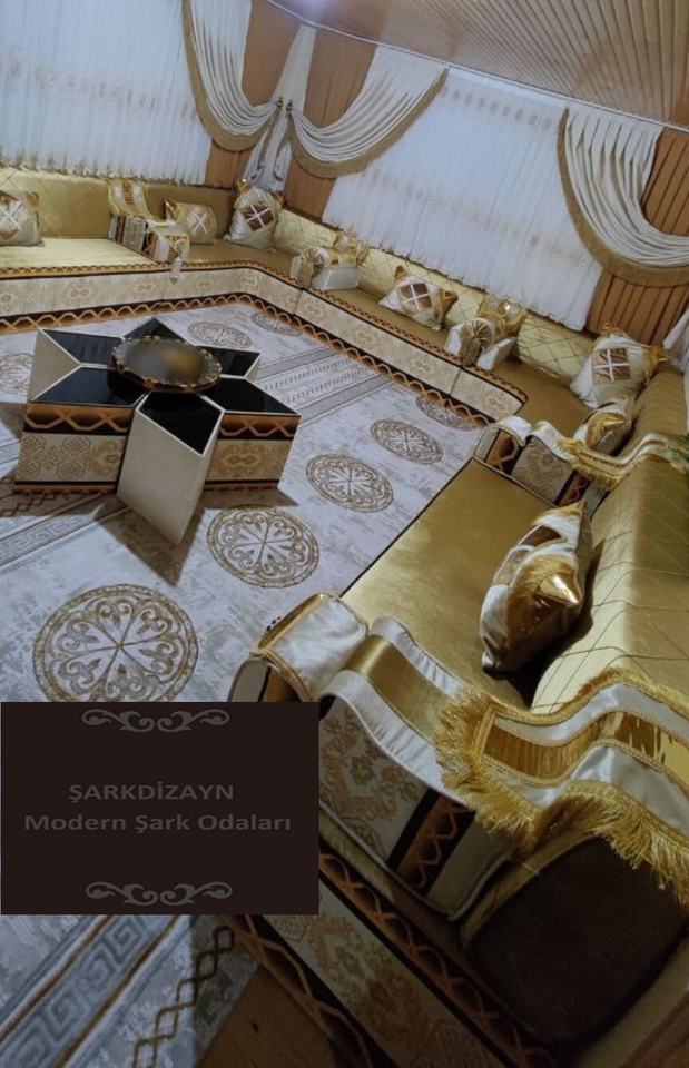 Arabic Majlis Moroccan Majlis Design | Sitting Height 40cm | Sofa + Wool Carpet + Curtain + Table Set FULL