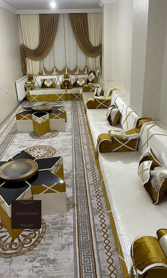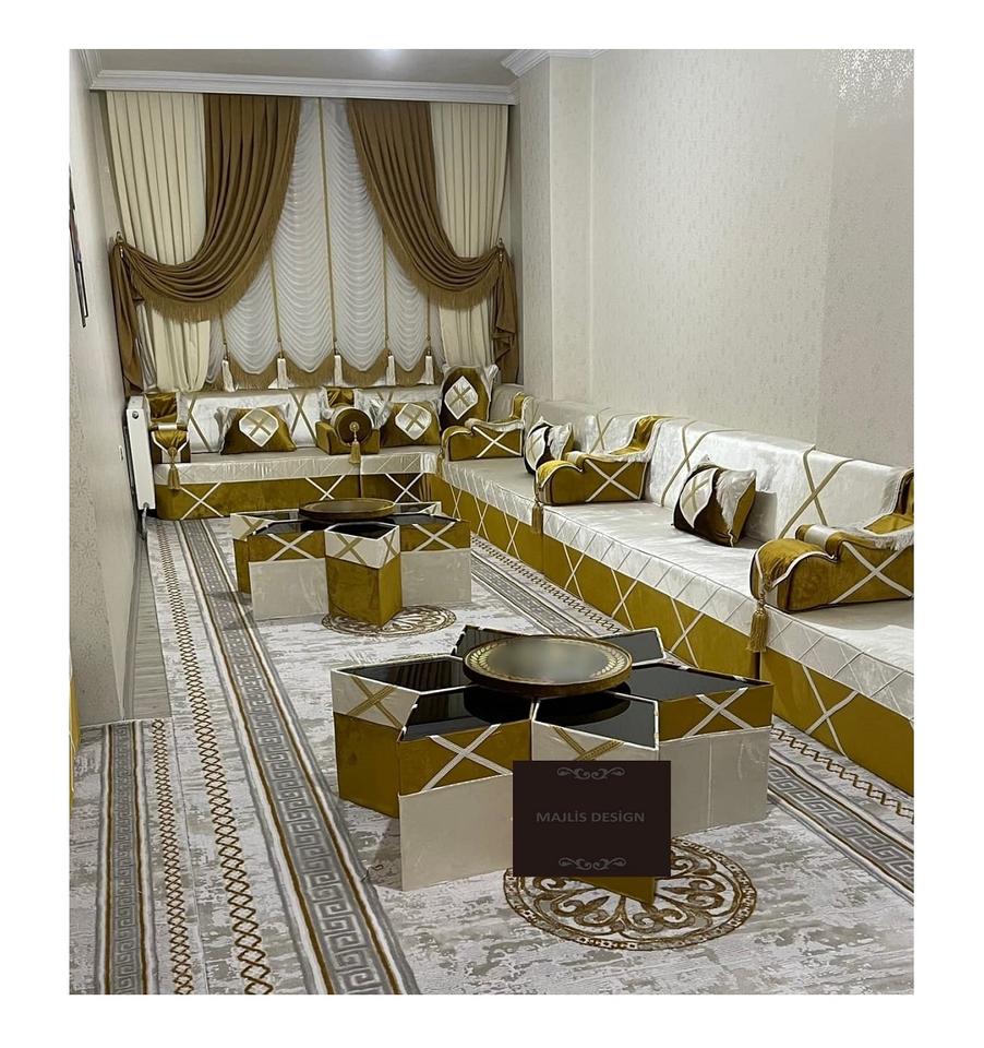 Moroccan Majlis Design Arabic Home Furniture Set Includes Sofa 40cm Sitting Height Wool Carpet Curtain Table-Full Set