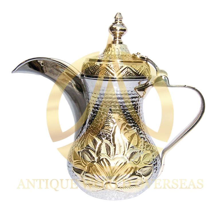 Arabic Metal Dallah in Brass and Steel for Hotel Restaurant Table Top Coffee Tea Serving Usage