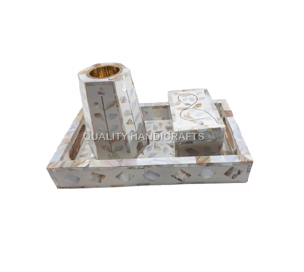 Arabic Ramadan Gift Set Wood Mother Pearl Inlay Mubkhar Bakhoor Burner Tray Oud Censer Rose Scent Bone Inlay for Religious