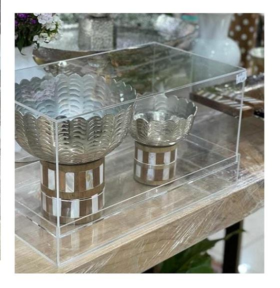Arabic Style Ramadan Eid Wedding Gift Mango Wood Mop Inlay Metal Bowl 3 Pcs Set Dessert Serving Bowl Food Storage Stand Bowl