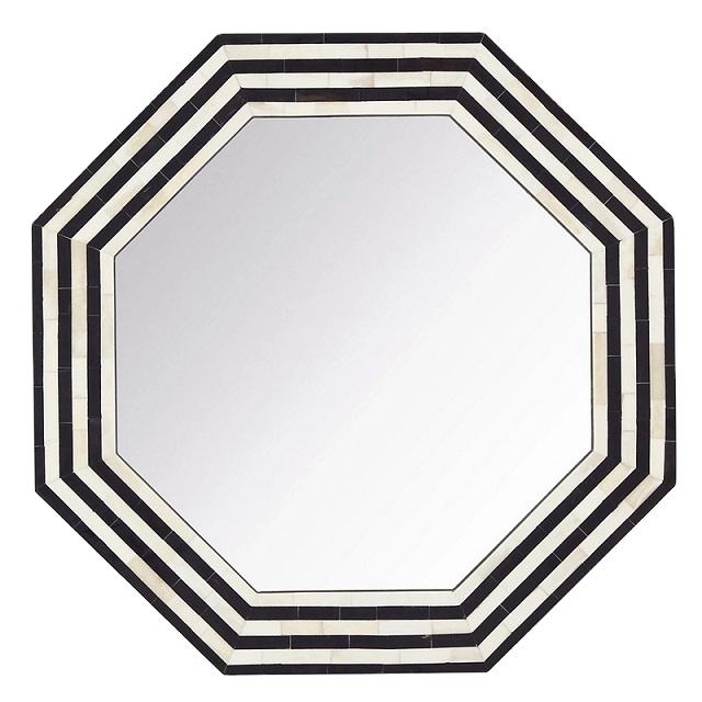 Arabic Traditional Mehrab Bone Inlay Mirror Frame in Star Geometric Pattern Design in Black and White for Home and Office