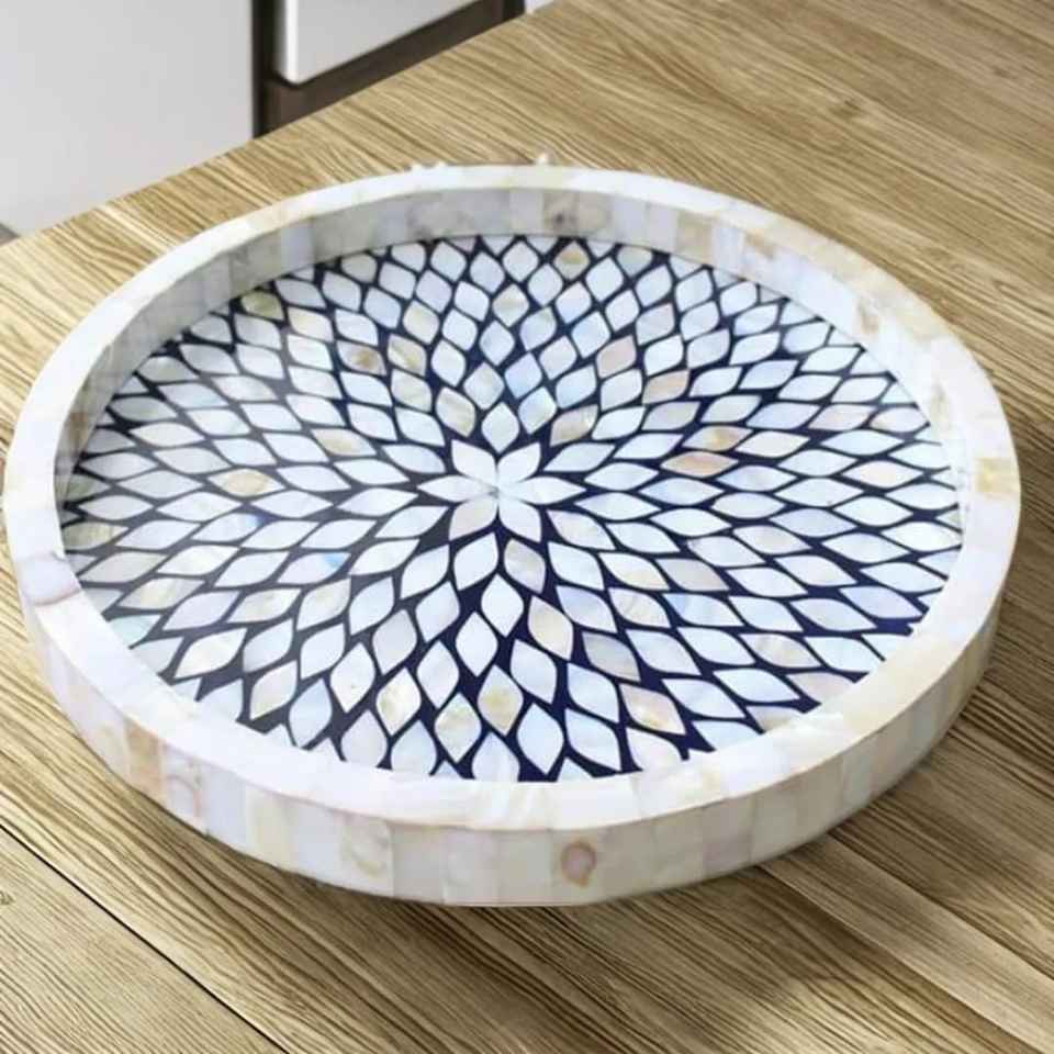 Arabic-inspired Mother Pearl Inlay Mirror Resin Serving Tray Handcrafted Single-tier Modern Luxury Design Perfect Elegant