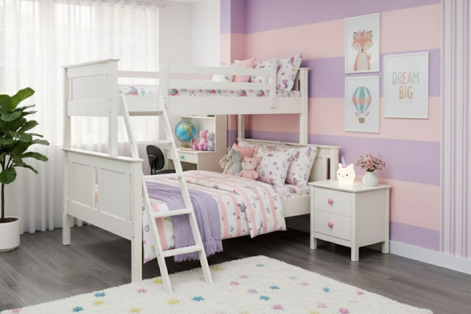 Aravinda Twin-Full Bunk Bed High Quality Solid Wood Bedroom Furniture Modern Traditional Style White Color Manufactured Vietnam