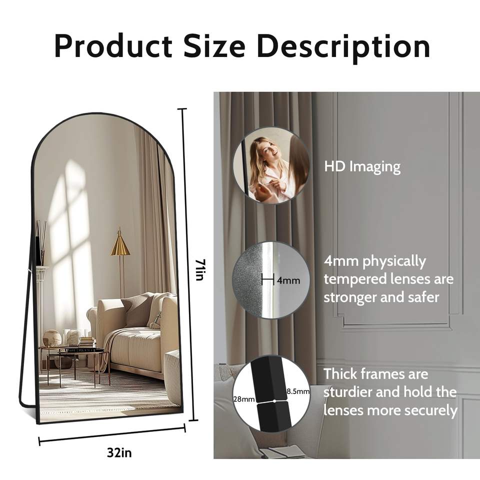 Arched Full Length Mirror Black Metal Frame Illuminated Free Standing Wall Hanging Modern Design for Salon Apartment Bedroom Use