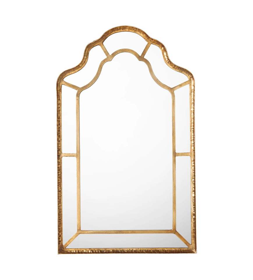 Arched Gold Frame Wall Mirror With Elegant Artistic Sculpted Detailing For Premium Luxury Home Decor Feature