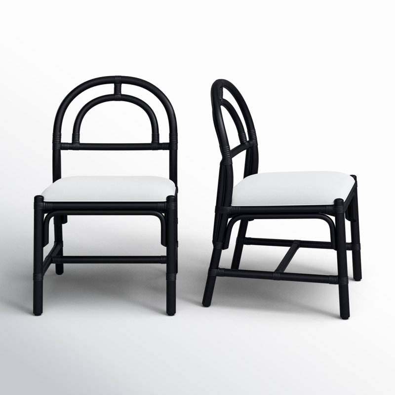 Arched Rattan Dining Chair Set of 2 Woven Seating for Dining