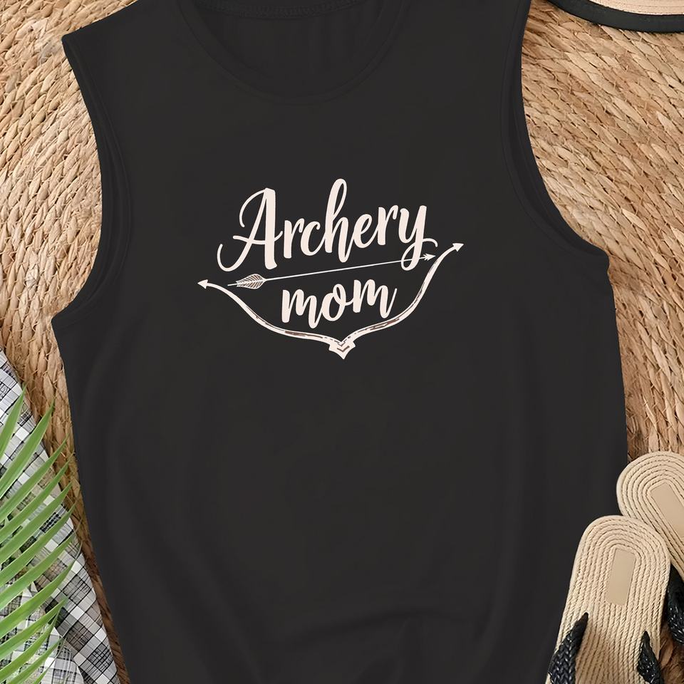 Archery Mom Women's Printed Casual Knitted Spandex/Polyester Vest Crew Neck Tank Tops