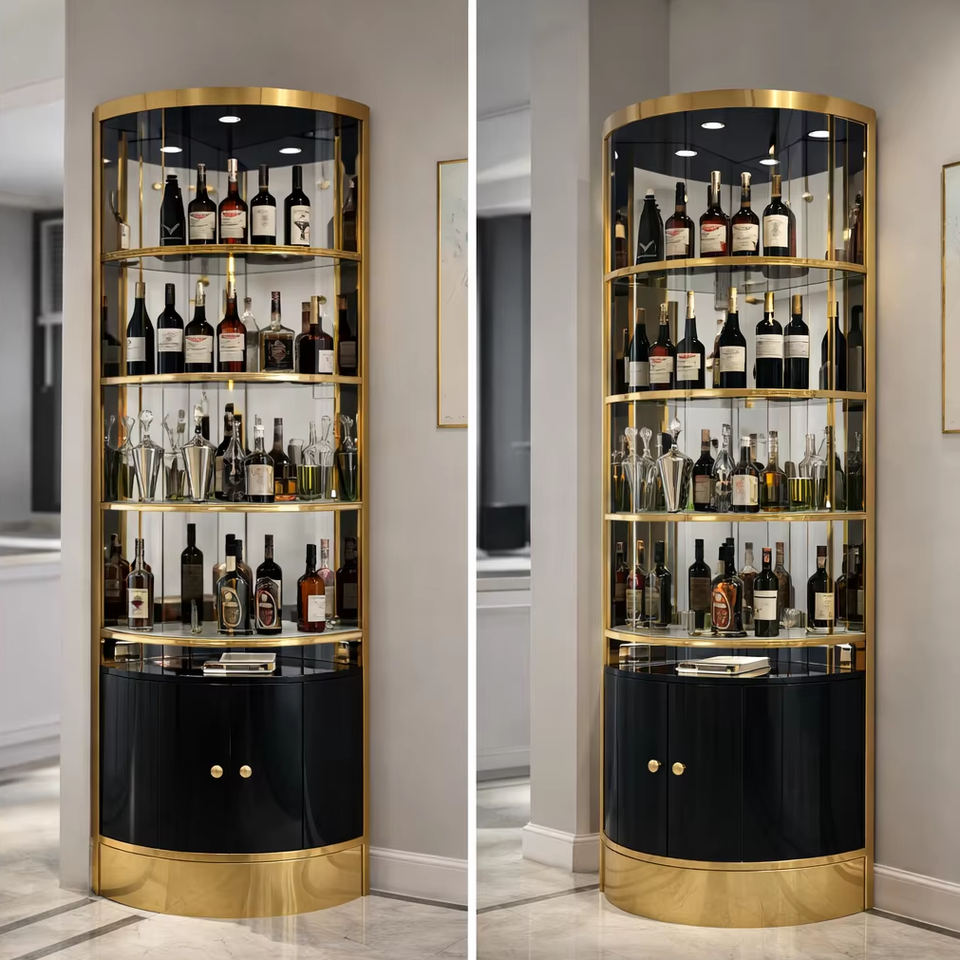 Argmac Solid Wood Modern Multifunction Bar Cabinet with 5+ Compartments Durable Design Freestanding Storage