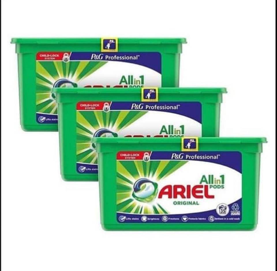 Ariel 3 in 1 Washing Capsules Deep Clean Stain Fighter and Fabric Care in One Pod.