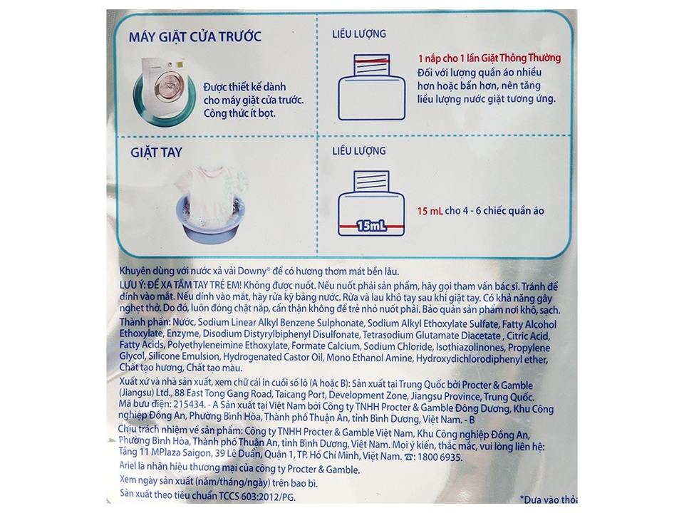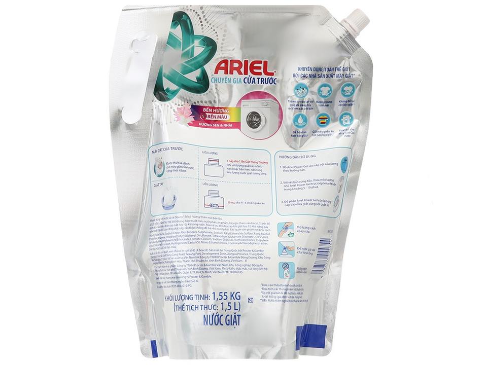 Ariel Liquid Detergent Lotus & Jasmine Fragrance, Color Fastness for Front Load Washing Machine 1.55kg x4 bags Vietnam