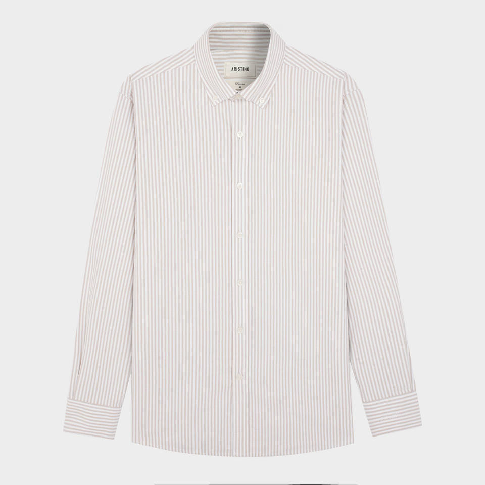 Aristino Brezza Brown Striped Anti-Wrinkle Breathable Oxford Cotton Men's Dress Shirt ALSU020S0 Wholesale Hot Price Top Product