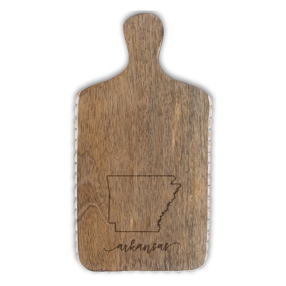 Handcrafted Arkansas Engraved Wooden Beaded Serving Cutting Board with Handle Elegant Design for Food Prep and Stylish Display