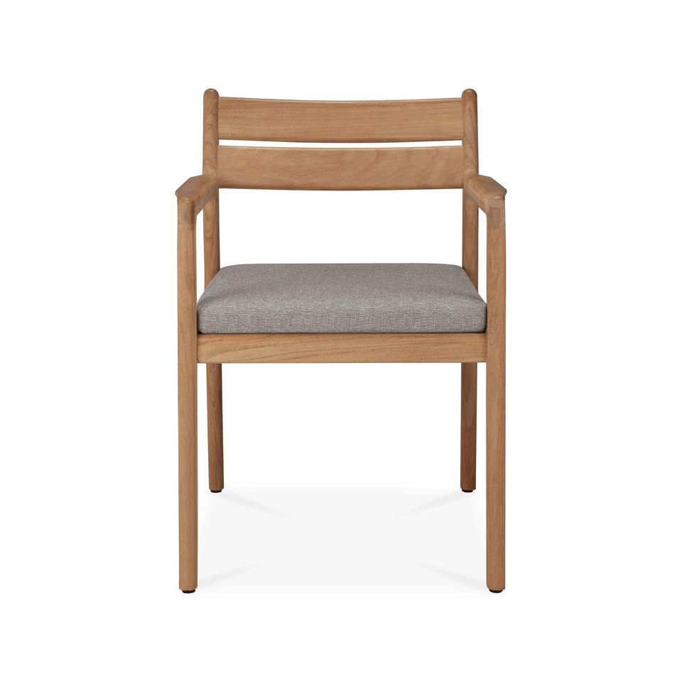 Arm dining chair made of solid teak wood high quality with cushion with natural color for indoor and outdoor.
