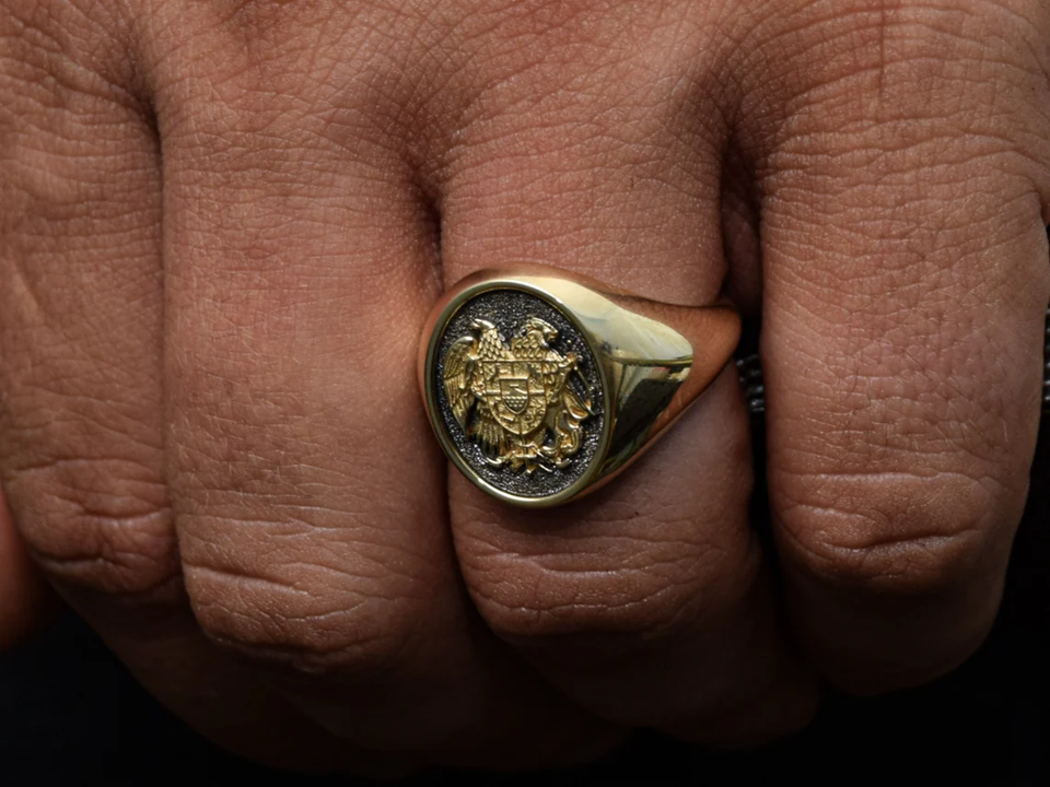 Armenia Fine Ring Coat of Arms Solid 18k Gold Plated Custom Made Signet Ring for Men's Fashion Jewelry