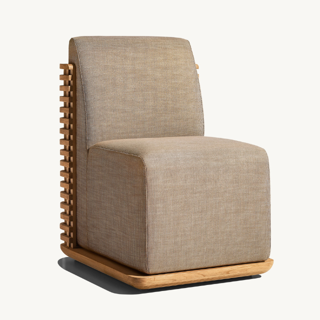 Armless chair furniture made of environmentally friendly teak wood with soft and fluffy cushions for outdoor use