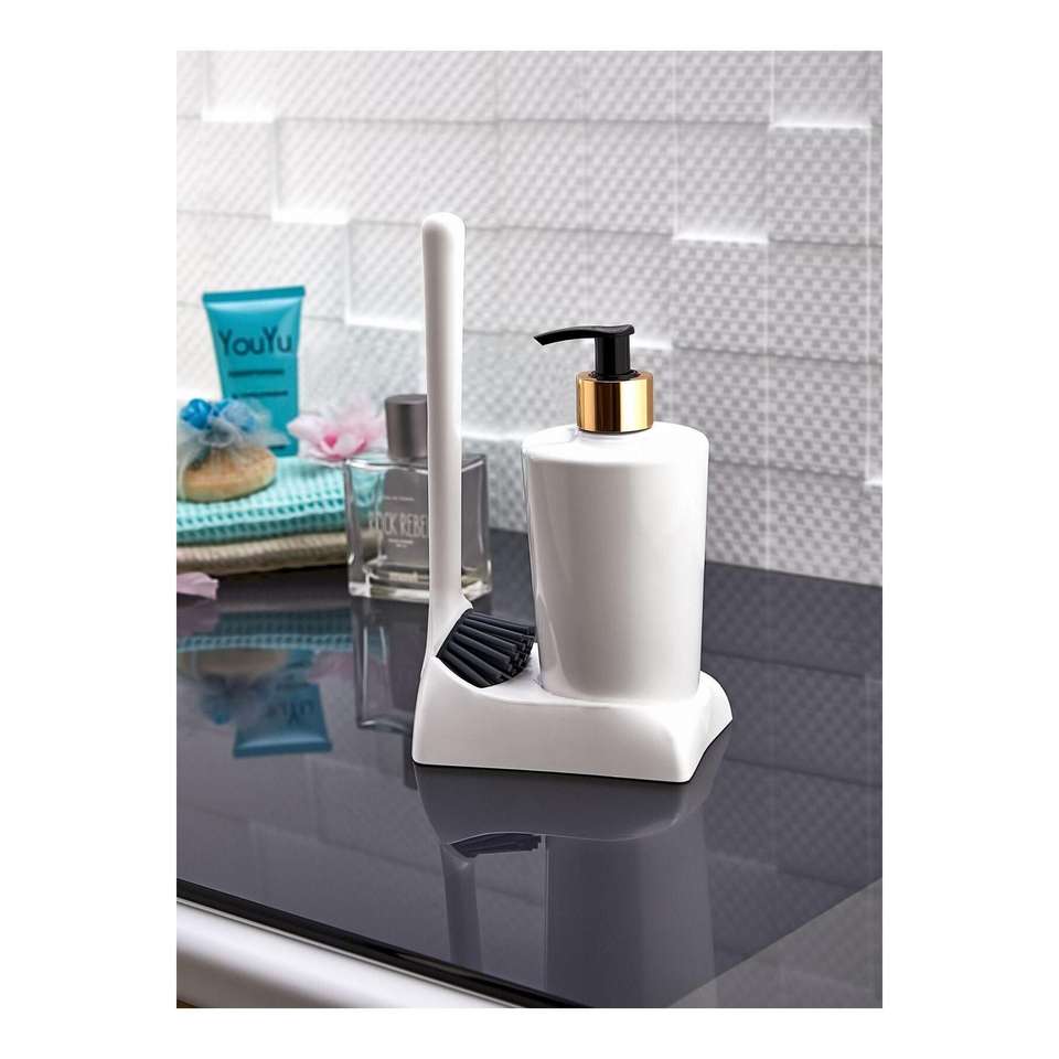 Armona Kitchen & Bathroom Silicone Brushed Liquid Soap Dispenser Set Including Sponge Holder