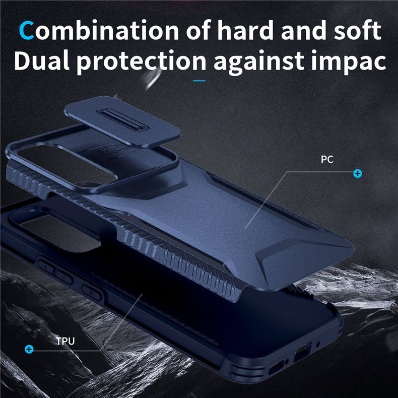 Armor Slide Window Protective Case Shockproof PC TPU Combo Phone Cover for Samsung Galaxy A54 5G