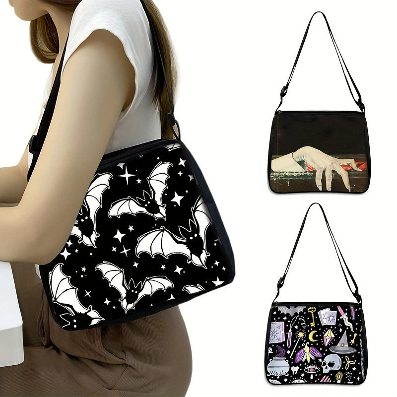 Armpit Bag Gothic Wind Printing Portable Shoulder Bag Bat Fashion Women's Tote Square Bag Bohemian Japan Style Polyester Summer