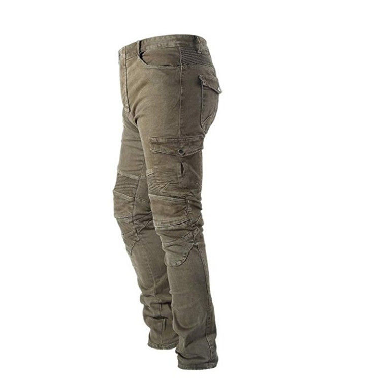 D-Ride Moto Army Green CE-Approved Breathable Quick-Dry Protective Biker Jeans for Motorcycling Detachable Knee Hip Pads All