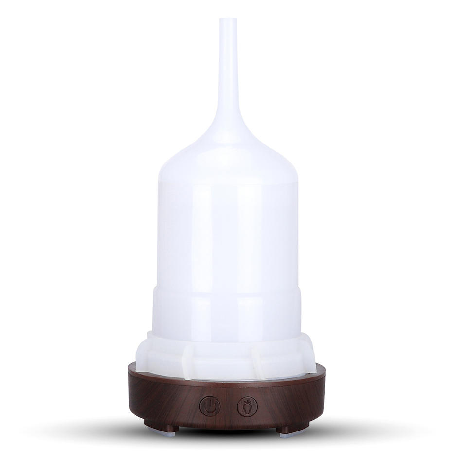 Aroma Diffuser 100Ml Electric Humidifier With Led Light For Home Use White Black Wood Grain Base