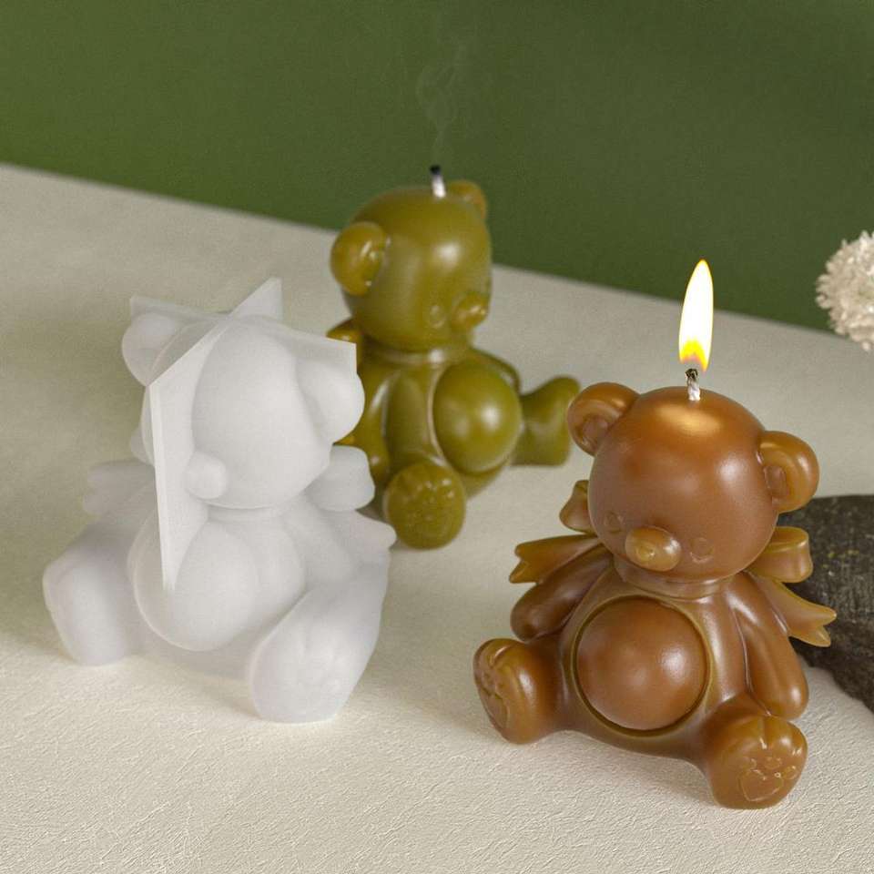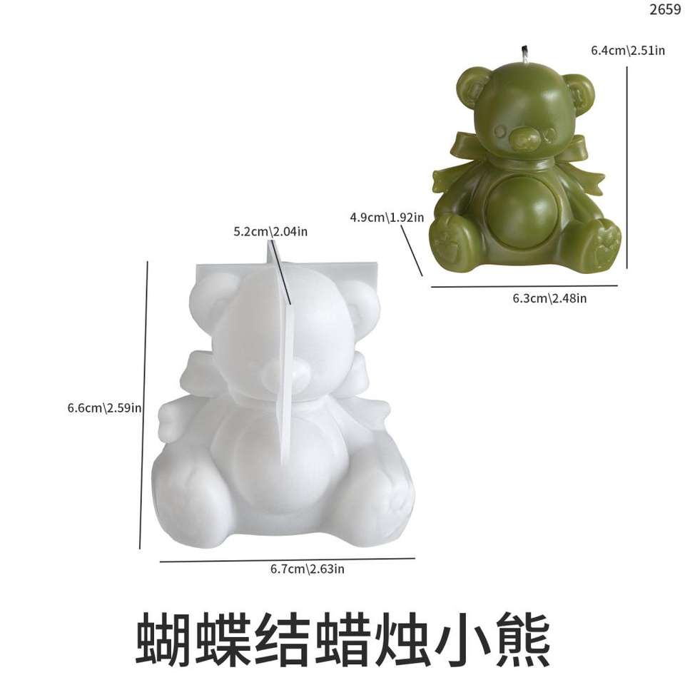 Aromatherapy Bowknot Bear Sitting Big Round Belly Bear Candle Gypsum Candle Silicone Mold