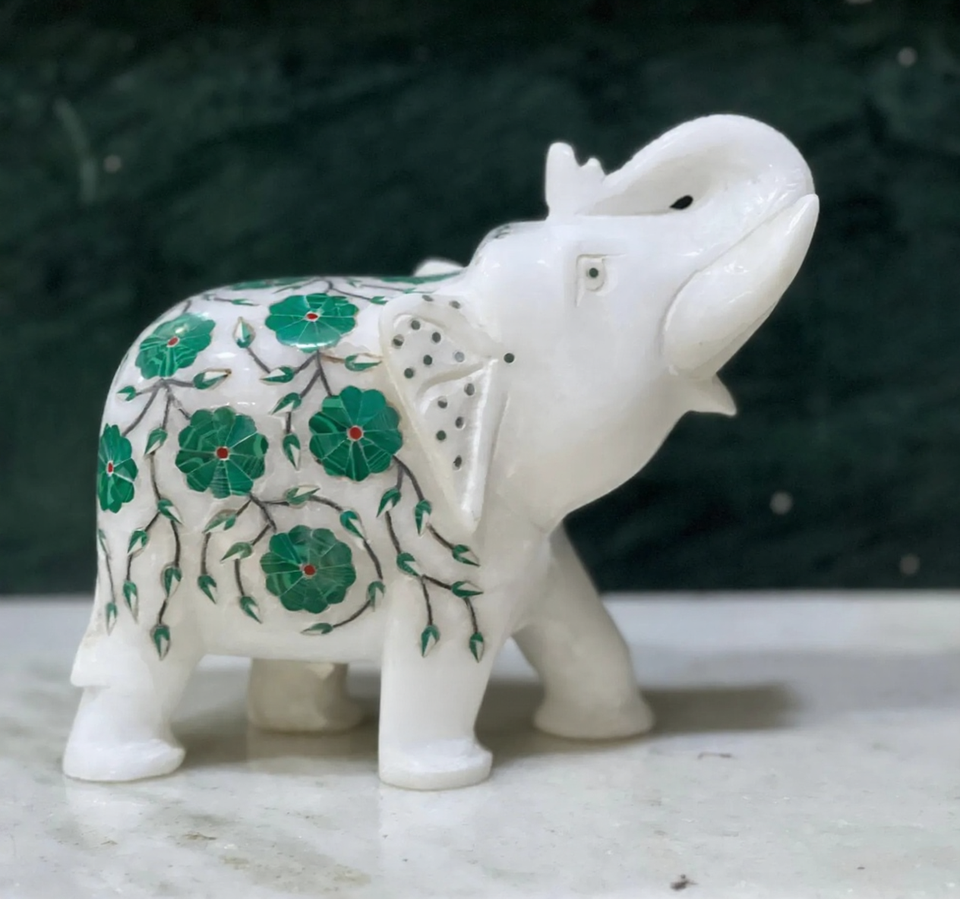 Arrival 2026 of Beautiful Pure White Marble Inlaid Elephant Statue Handmade New Corporate Gift Economically Priced Home Decor