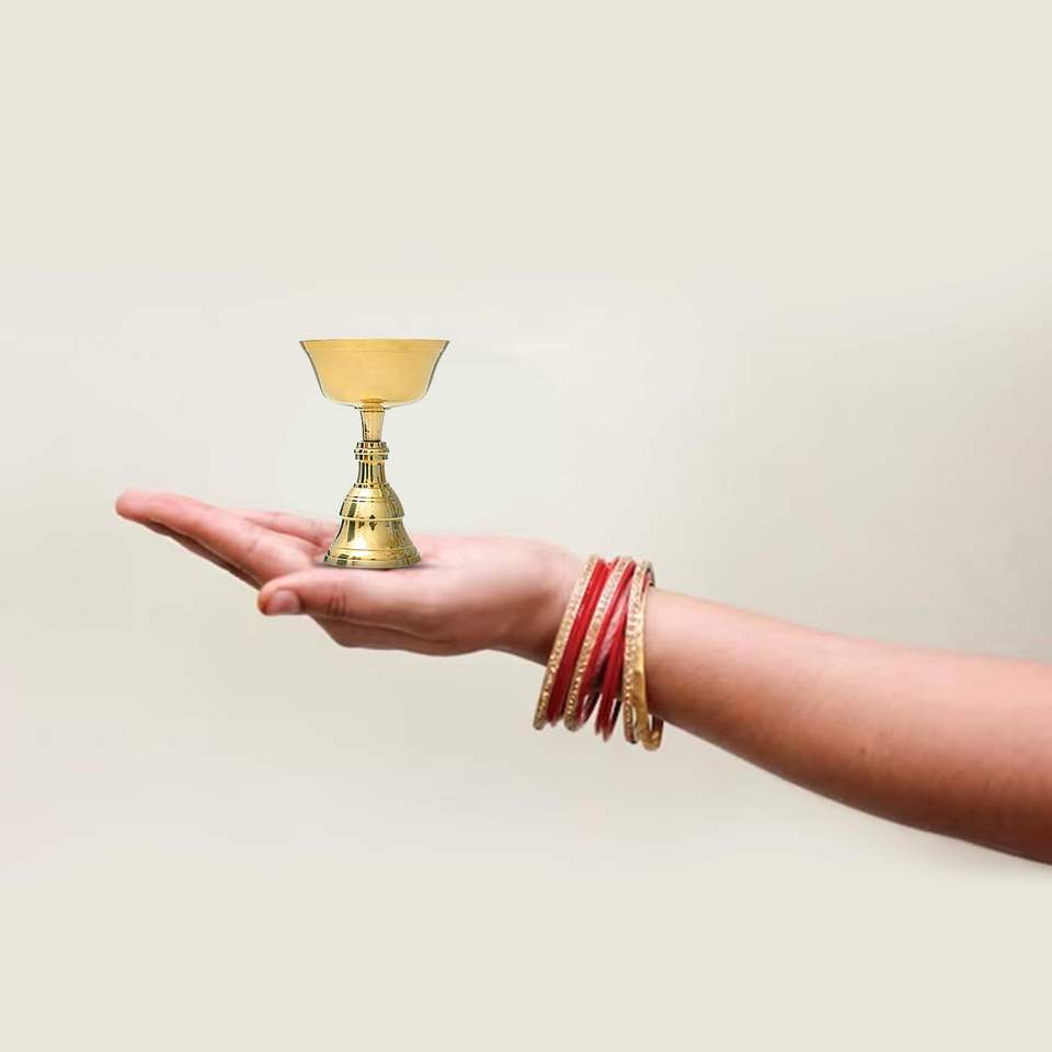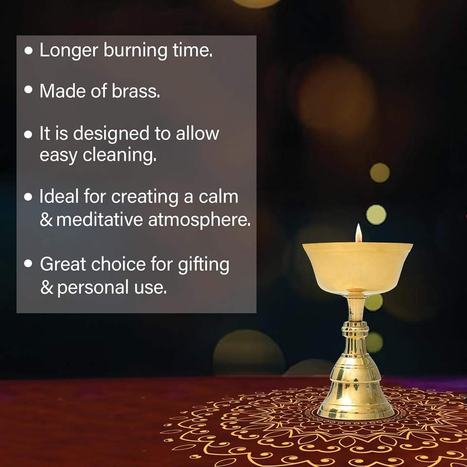 Art Deco Brass Diya Oil Lamp for Puja and Home Temple | Traditional Deepam Jyot Kundulu for Diwali Pooja and Festive Decoration