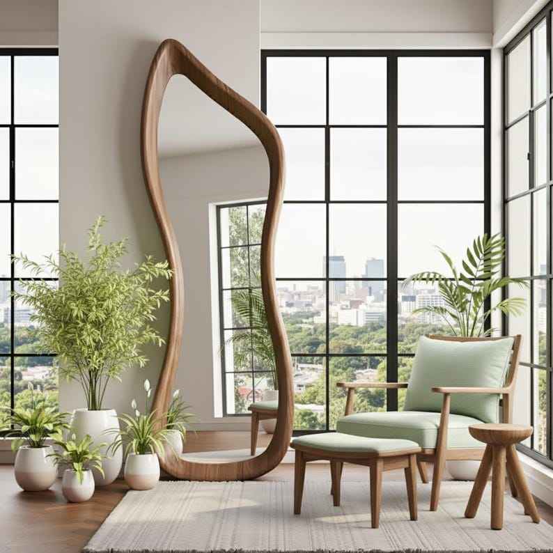 Art Deco Real Walnut Wooden Wall Mirror Handmade with Elegant Design for Home Decor