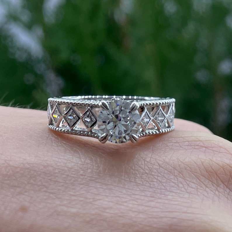 Art Deco Round And Princess Cut Original Moissanite Diamond Classic Ring 925 Silver Fine Jewelry for Women Wedding Party Gift