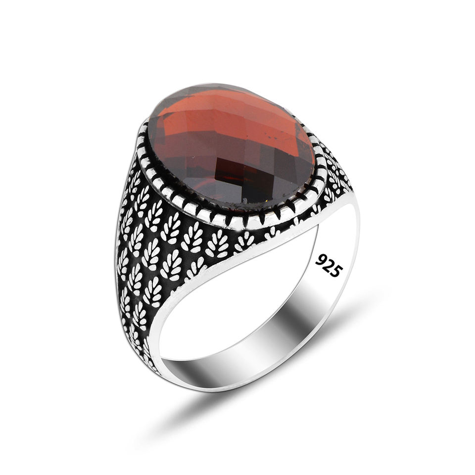 Art Design Red Stone Ottoman Men Ring 925 Silver Jewelry Wholesale Silver Ring for Men Trendy Zircon Fine Jewelry Rings Hot Sale