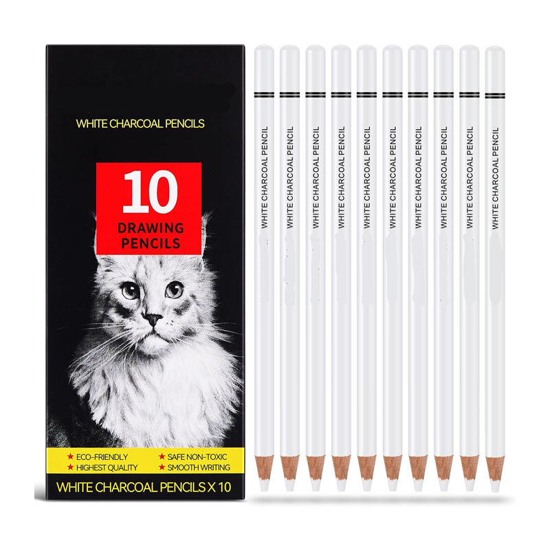Art Supplies Professional White Charcoal Pencil Set Custom Sketch Highlight White Pencils Artist Drawing Pencil