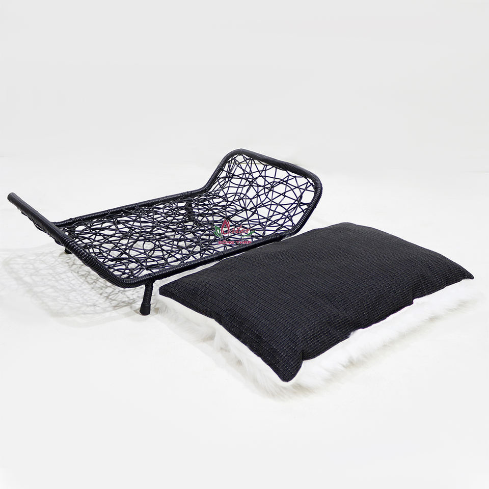 Artex Dong Thap Black Plastic Woven Elevated Pet Bed with Faux Fur Cushion for Living Room Eco-friendly