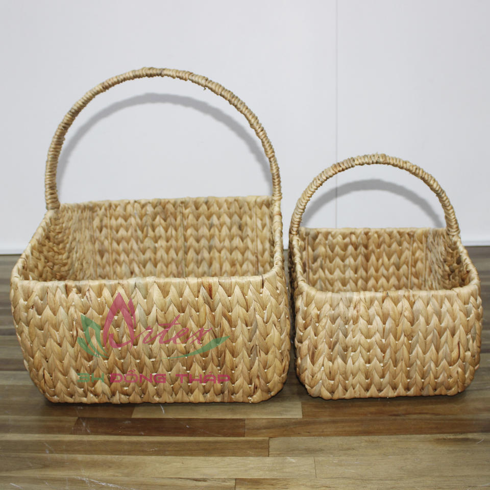 Artex Dong Thap Decorative Natural Handwoven Picnic Hampers with Handle Stackable Handcrafted Baskets for Beach and Picnic Trips
