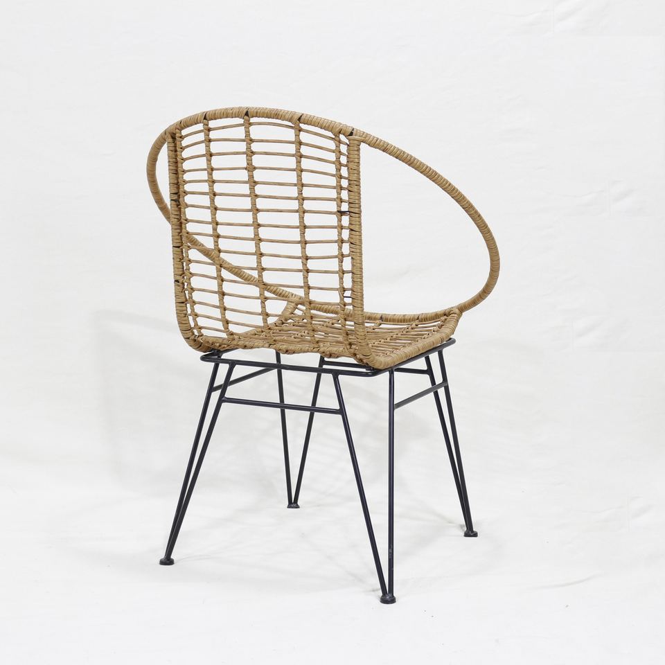 Artex Dong Thap Factory Outdoor Single Chair with Black Powder Coated Steel Frame and Brown Handwoven Rope Rattan Style Seat