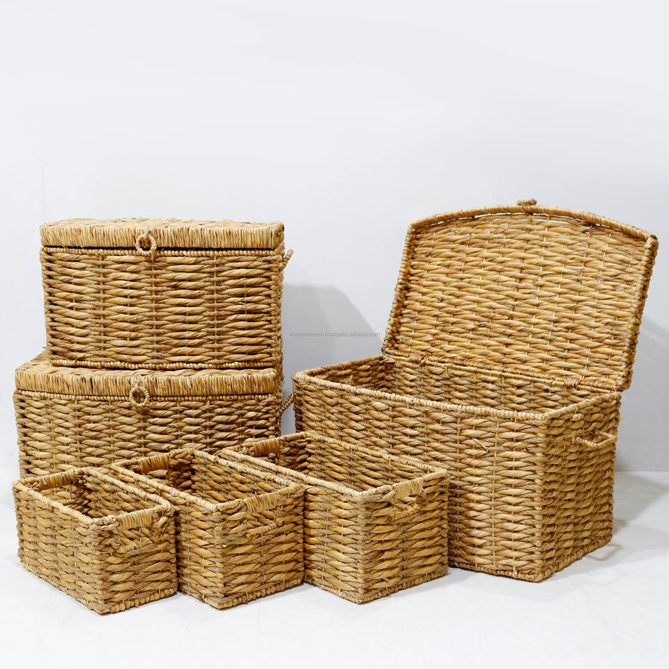 Eco-Friendly Natural Water Hyacinth Woven Basket With Lid for Storage Home Organization and Decorative Use