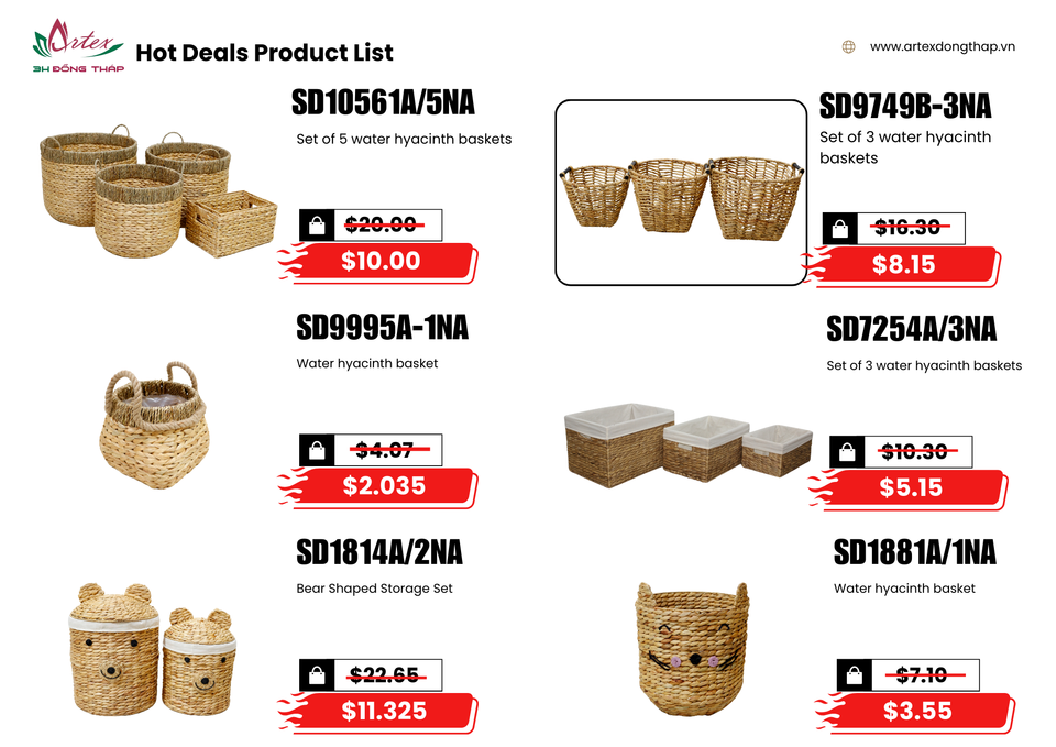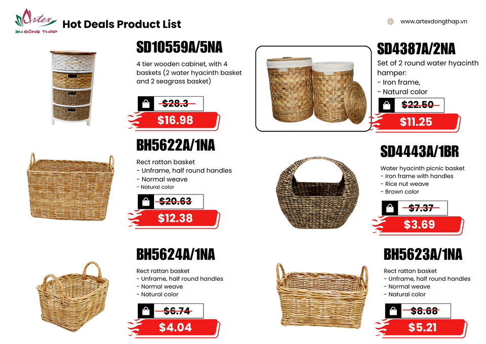 Artex Dong Thap Factory Wholesale 4 tier wooden cabinet with 4 Hyacinth Wicker Basket With Handles Natural for Household